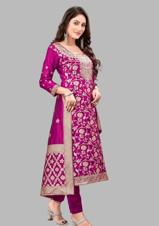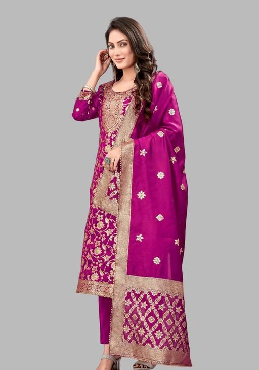 Unstitched silk suit banarasi dress material