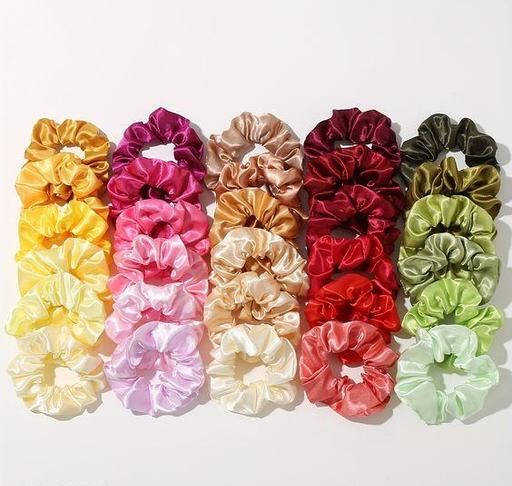Name: (Pack of 24) (Multi-Random color) Premium Silk Satin Scrunchies (Pack of 8) Rubber Rubber Band (Multicolor)