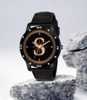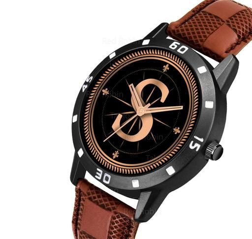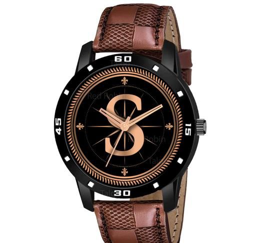 Name: Analog Round Black Dial ALPHABET S Design Stylish Brown Leather Strap Classic Design Fancy Wrist Watch for Men and Boys, Pack of 1 - ALPHA-S-AVO-BLK-BRW-CHL