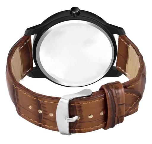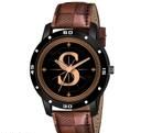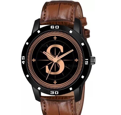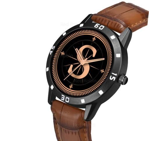 Name: Analog Round Black Dial ALPHABET S Design Stylish Brown Leather Strap Classic Design Fancy Wrist Watch for Men and Boys, Pack of 1 - ALPHA-S-AVO-BLK-DBRW-CRL