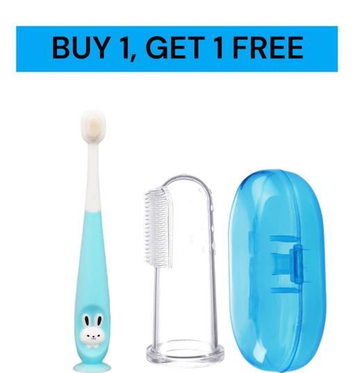 The Little Bunny Ultra Soft Toothbrush And Finger Brush For New born Bab is the ultimate duo for your baby's first oral care needs. The ultra-soft toothbrush features fine bristles that are perfect for cleaning delicate gums and new teeth without irritation. The finger brush is designed to fit comfortably on a parent's finger, allowing for easy and controlled brushing while soothing teething discomfort. Made from high-quality, BPA-free materials, this set is gentle on your baby's mouth and safe for everyday use. With an ergonomic design that fits perfectly in small hands, it makes brushing a fun and comfortable experience for your baby. Ensure a healthy start to oral hygiene with this essential set, tailored specifically for new-born's and infants.