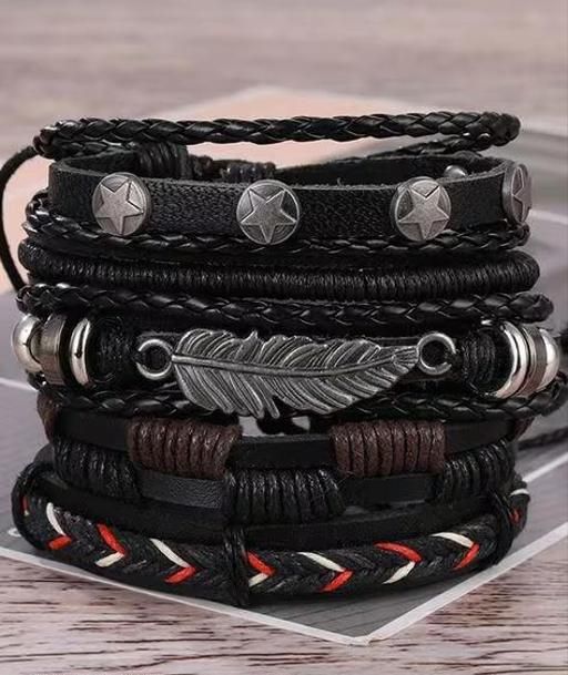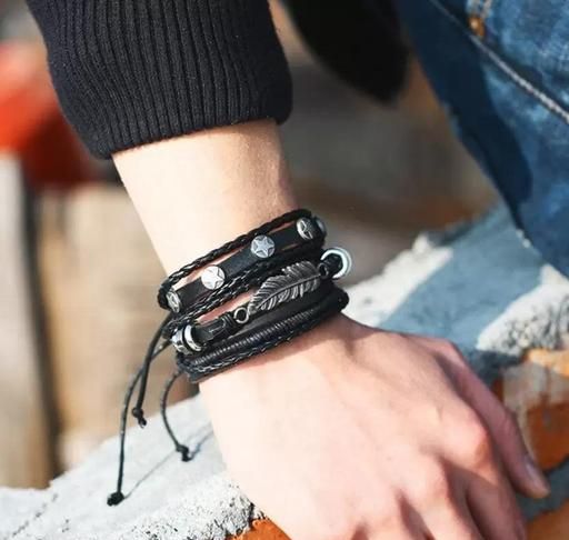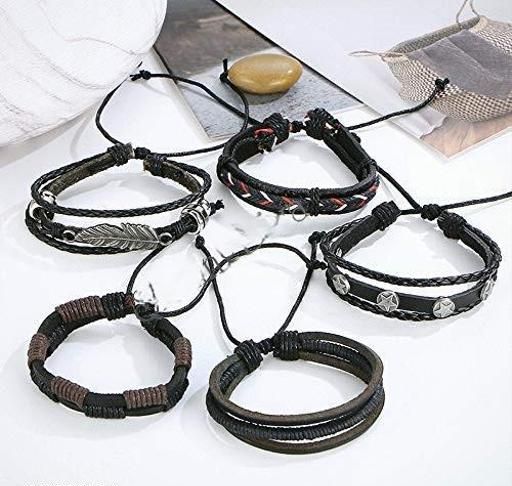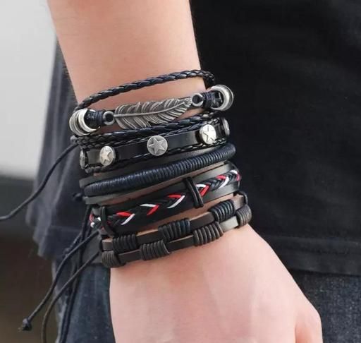 Name: Pack Of 5 Unisex Black Pu Leather Multilayer Adjustable Bracelet