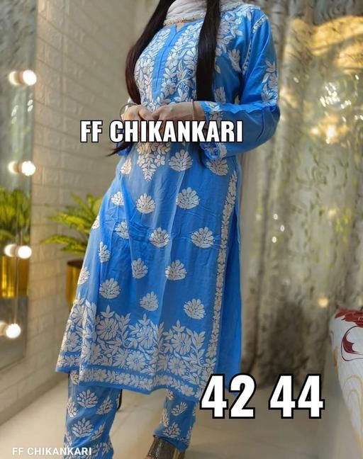 L (Bust Size: 40 in, Shoulder Size: 17 in, Kurta Waist Size: 34 in, Kurta Hip Size: 44 in, Kurta Length Size: 42 in, Bottom Waist Size: 34 in, Bottom Length Size: 40 in)