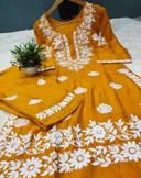 M (Bust Size: 38 in, Shoulder Size: 16 in, Kurta Waist Size: 32 in, Kurta Hip Size: 42 in, Kurta Length Size: 42 in, Bottom Waist Size: 32 in, Bottom Length Size: 40 in)