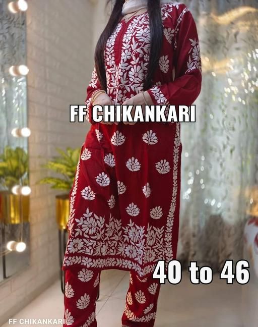 L (Bust Size: 40 in, Shoulder Size: 17 in, Kurta Waist Size: 34 in, Kurta Hip Size: 44 in, Kurta Length Size: 42 in, Bottom Waist Size: 34 in, Bottom Length Size: 40 in)