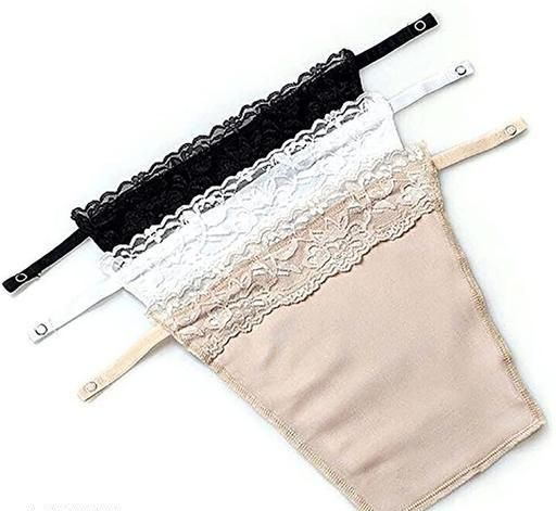 Name: Fshway Cotton Clip-on Mock Lace Camisole for Women, Deep Neck Cleavage Cover Cami Secret(Black, White, Beige, Free Size) Set of 3