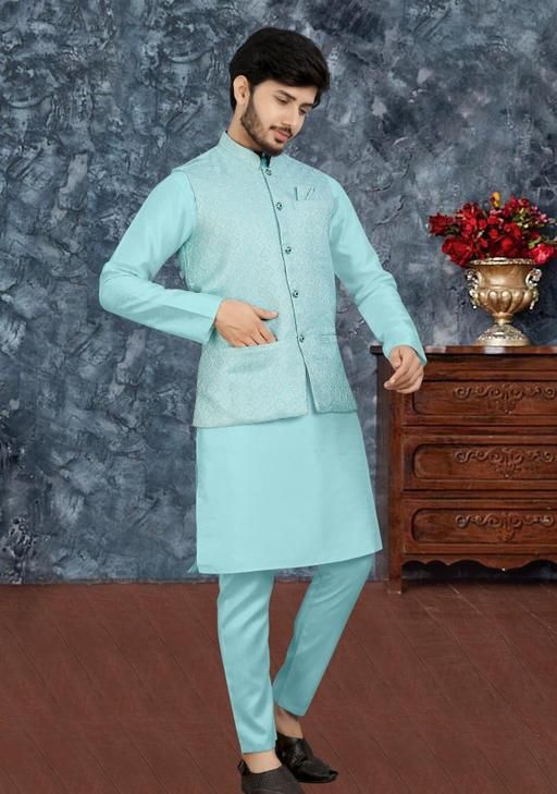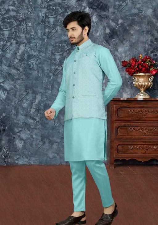 Name: Silk Kurta Koti Set for Indian Wedding | Men's Silk Kurta Koti for Festive Wear | Premium Quality Silk Kurta Jacket Set