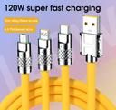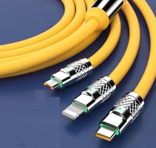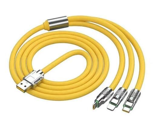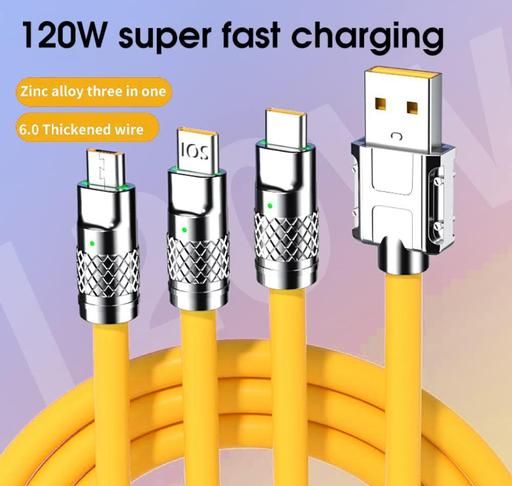 3 in 1 Fast Charging Data Cable , 120W Portable, charger chod with USB Type-C & Micro- USB (Yellow)