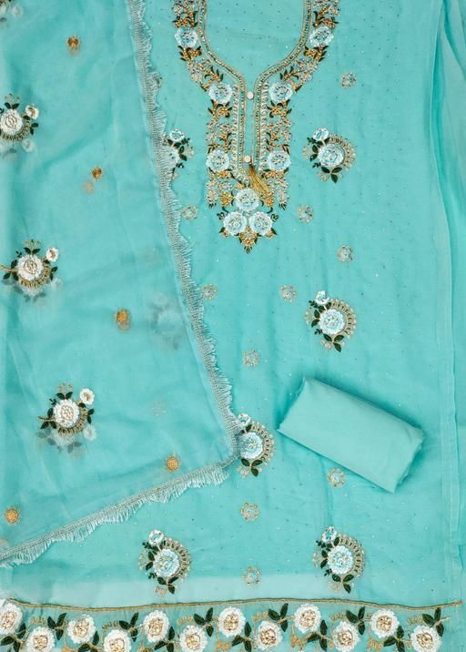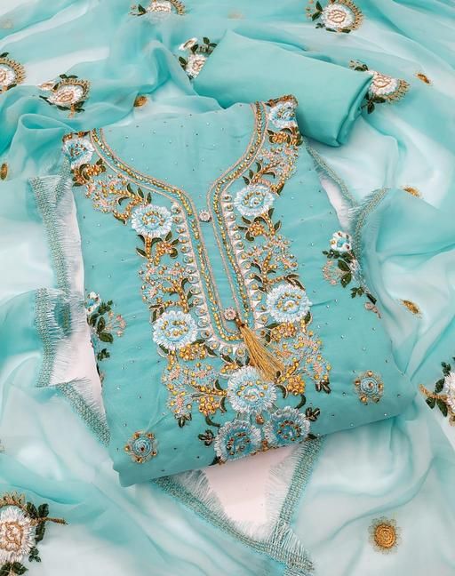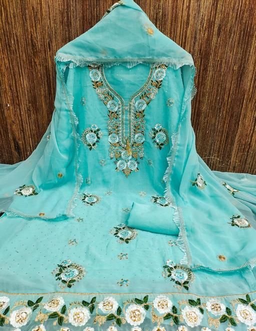 Name: Unstitched Georgette Salwar Suit Material Embroidered