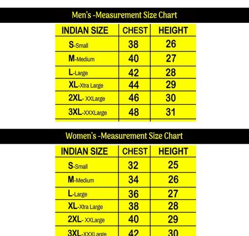 Fit Type- Men's Regular Fit , Women's Silm Fit , 100% Cotton, Men'S Size Available -S(38)-M(40)-L(42)-XL(44)-2XL(46) , Women'S Size Available -S(32)-M(34)-L(36)-XL(38)-2XL(40),Occasion - Valentine day celebrations, Birthday celebrations, Marriage Anniversaries, Weddings, Engagements, Daserra, Ganesh Chaturthi, Sankranti, Diwali,Deepavali,Deepawali,womens day, janmashtami,Rakhee, Bhaiya dooj,bhaiyadooj,Rakshabandhan gift for brother and bhabi,for bhaiya bhabi,Holi celebration,Christmas,Onam,easter day,new year celebration,friendship day,family get together,family celebration,family functions,fathers birthday,mom birthday,sibling,brother,sister,love,happiness.