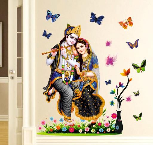 Name: Radha Krishna Decor Kids Room Decor, Hall Decor, Kitchen Decor, Living Room Decor, Bedroom Decor Vinyl Wall Sticker, Multicolor (Standard Size -84X76Cm)