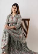 Name: Classic Designer Women kurta/tranding gown/letest kurta/flower gown/new look kurta/long suit/velvent anarkali suit/ gown for women/umbrella all top/umbrella long top Fabric: Viscose Rayon Sleeve Length: Three-Quarter Sleeves Pattern: Printed Net Quantity (N): 1 Sizes: S (Bust Size: 36 in, Waist Size: 34 in, Hip Size: 40 in, Shoulder Size: 15 in) M (Bust Size: 38 in, Waist Size: 36 in, Hip Size: 42 in, Shoulder Size: 17 in) L (Bust Size: 40 in, Waist Size: 38 in, Hip Size: 44 in, Shoulder Size: 19 in) XL (Bust Size: 42 in, Waist Size: 40 in, Hip Size: 46 in, Shoulder Size: 21 in) XXL (Bust Size: 44 in, Waist Size: 42 in, Hip Size: 48 in, Shoulder Size: 23 in) XXXL (Bust Size: 46 in, Waist Size: 44 in, Hip Size: 50 in, Shoulder Size: 25 in) 4XL Graceful Floral Maxi Dress Step into effortless elegance with this stunning floral maxi dress, perfect for both casual outings and festive occasions. The dress features a soothing sage-green base adorned with delicate pink and white flowers, creating a harmonious and refreshing look. Crafted from soft, breathable fabric, this maxi dress ensures all-day comfort. The tiered silhouette and gathered waist enhance the feminine appeal, while the three-quarter sleeves with contrasting trim add a touch of sophistication. The V-neckline with subtle piping detail adds a stylish element, making it suitable for various occasions. Pair it with statement earrings and heels for a chic look or keep it casual with flats. A versatile wardrobe addition that blends style, comfort, and elegance effortlessly. Country of Origin: India