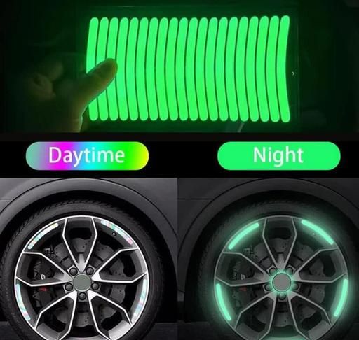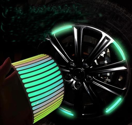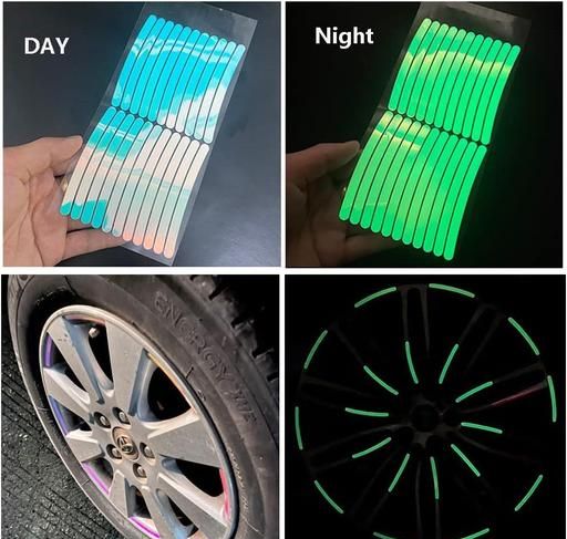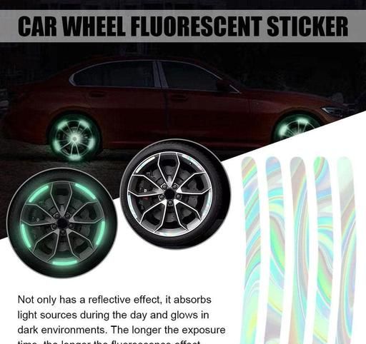 Name: DYNOSTORE 20PCS Reflective Car Wheel Sticker, Car Stickers Glowing Wheel Hub Sticker Car Stripe Decals, Luminous Car Stickers for Night Driving, High Reflective Wheel Stickers Decoration Universal