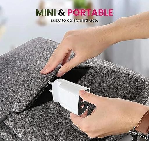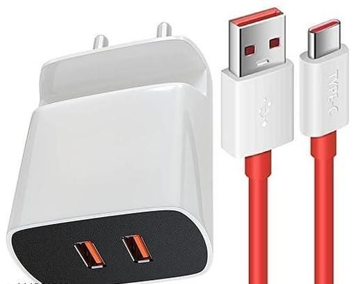 Name: 2 Port Mobile Charger Original Adapter Like with Inbuilt Mobile Stand Mobile Charger Multi-Layer Protection Hi Speed Fast Type-C Dual port Charger With 1.2m Type C dash Red Charging & Sync Data Cable White, 4.8Amp