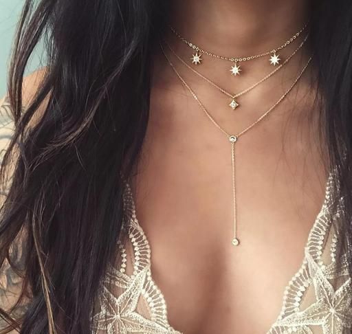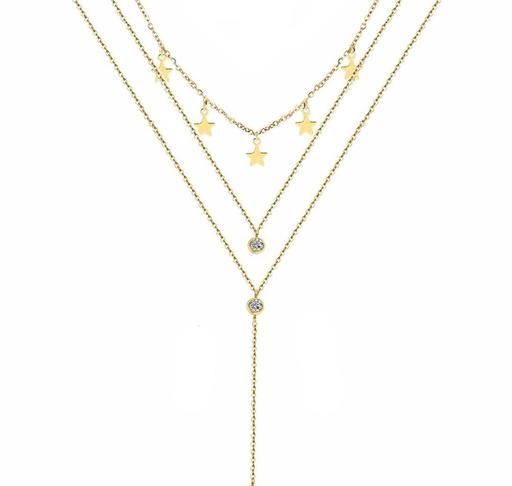 Three Layered Star Studs Pendant Necklace For Girls And Women. Add An Instant Charm To Your Look Wearing This Multi Layered Chain Necklace. A Must Have In Your Jewellery Collection::This Multilayer Necklace Is Perfect For Party Wear::Casual Wear Or Office Wear. Ideal Valentine::Birthday::Anniversary Gift For Someone You Love.