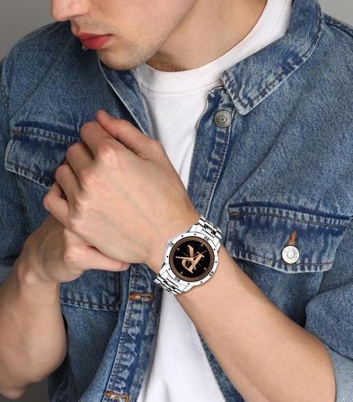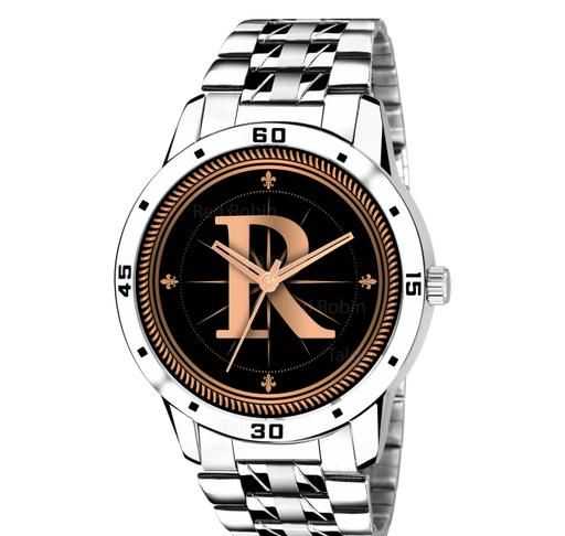 Name: Gadgets WorldAnalog Round Black Dial ALPHABET R Design Stylish Silver Stainless Steel Strap Classic Design Fancy Wrist Watch for Men and Boys, Pack of 1 - ALPHA-R-AVO-SIL-STL
