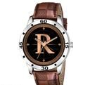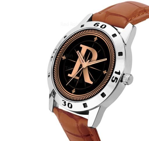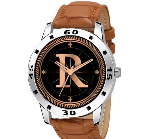Name: Gadgets WorldAnalog Round Black Dial ALPHABET R Design Stylish Beige Leather Strap Classic Design Fancy Wrist Watch for Men and Boys, Pack of 1 - ALPHA-R-AVO-SIL-TAN-CRL