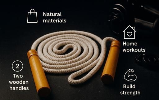 WOODEN EMBEDDED COTTON ROPE : Our weighted jump rope is constructed with a braided steel core, securely coated with wood.