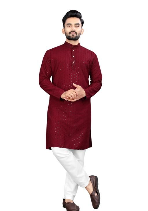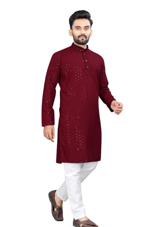 Name: (ONLY KURTA) Traditional Embroidery Chikankari Work Lakhnavi Kurta For Mens