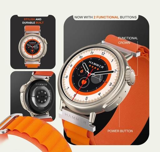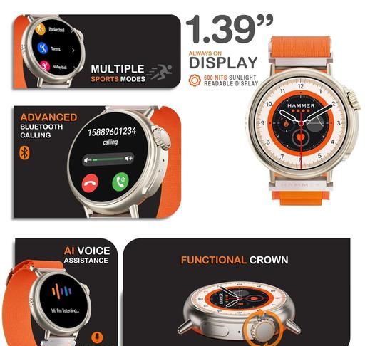 Name: Active 3.0 1.39" Round Dial Smart Watch for Men On Display, Metallic Body, Bluetooth Calling, Notifications (Pop Orange)