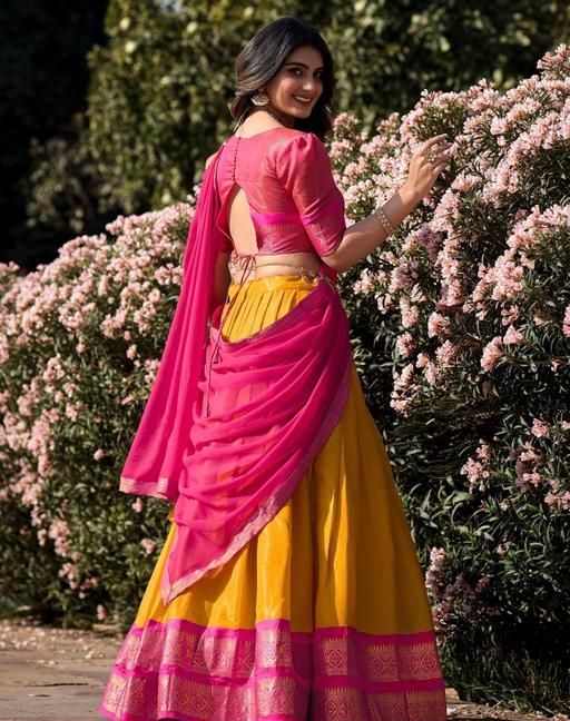 Name: Art Silk Kanjivaram Unstitched Lehenga with Unstitched Blouse and Georgette Dupatta