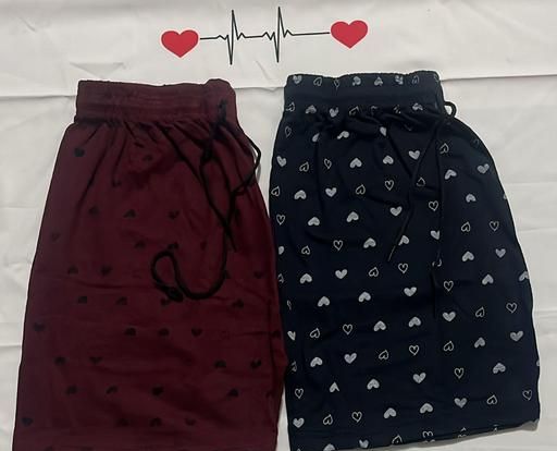 Name: pack of 2 Explore our collection of trendy and fashionable women's shorts, including Heart printed designs, comfy cotton blends, nightwear and gym wear s, stylish Boxer Short, elastic waist loose fits, tight fit stretchable cycling shorts, Combo Pack oF 2