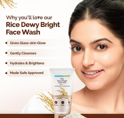 "MADE SAFE CERTIFIED: Time to glow, naturally! Rice Face Wash is dermatologically tested and Made Safe Certified making it absolutely safe for all skin types."