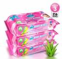 Baby Wipes with Aloe Vera,Vitamin E & Mild Fragrance ( Pack of 3 (216 Wipes)
