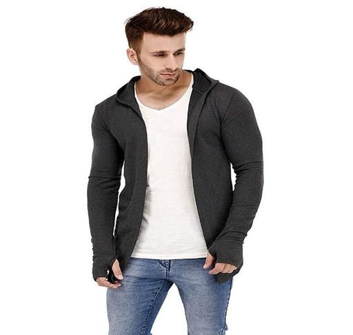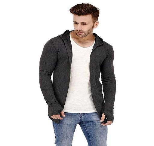 Name: Men Dark Grey Hooded Thumbhole Open Long Cardigan Overcoat Shrug Men's Party Wear Solid Cotton Square Neck Collar Full Sleeves Cardigan Overcoat/Shrug
