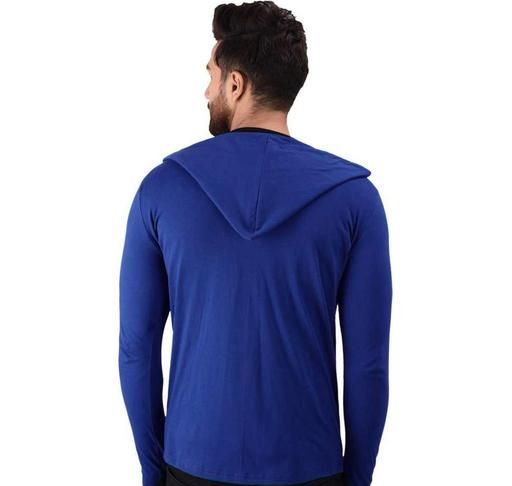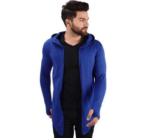 Name: Men Royal Blue Hooded Thumbhole Open Long Cardigan Overcoat Shrug Men's Party Wear Solid Cotton Square Neck Collar Full Sleeves Cardigan Overcoat/Shrug
