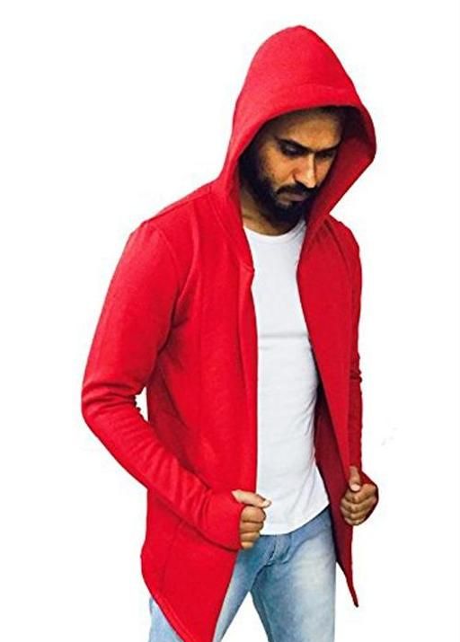 Name: Men Red Hooded Thumbhole Open Long Cardigan Overcoat Shrug Men's Party Wear Solid Cotton Square Neck Collar Full Sleeves Cardigan Overcoat/Shrug