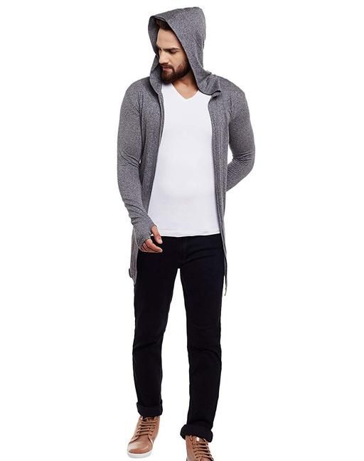 Name: Men Navy Anthra Hooded Thumbhole Open Long Cardigan Overcoat Shrug Men's Party Wear Solid Cotton Square Neck Collar Full Sleeves Cardigan Overcoat/Shrug
