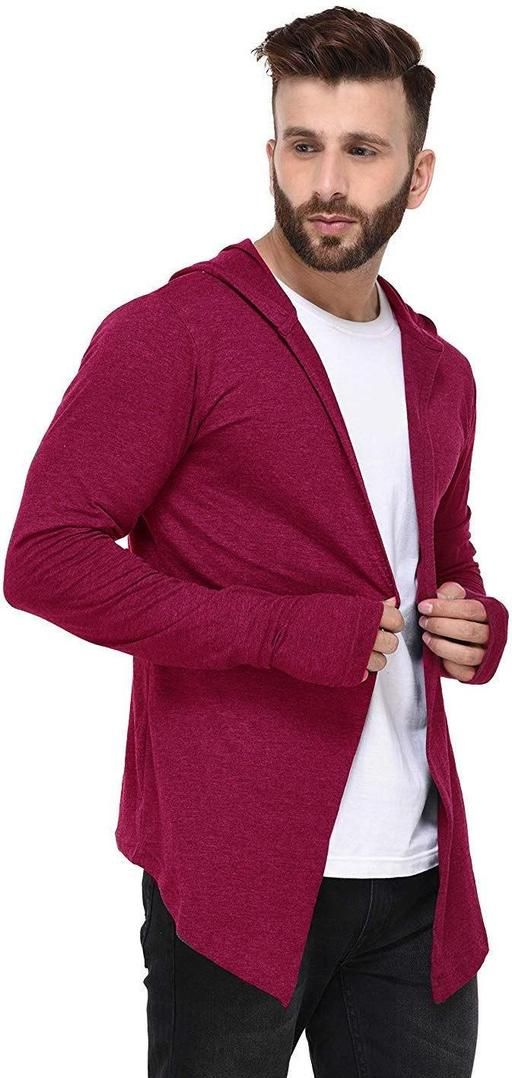 Name: Men Mehroon Hooded Thumbhole Open Long Cardigan Overcoat Shrug Men's Party Wear Solid Cotton Square Neck Collar Full Sleeves Shrug