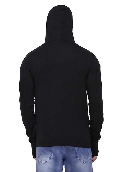 Name: Men Black Hooded Thumbhole Open Long Cardigan Overcoat Shrug Men's Party Wear Solid Cotton Square Neck Collar Full Sleeves Shrug