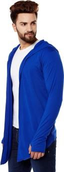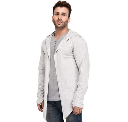 Name: Men Grey Hooded Thumbhole Open Long Shrug Men's Premium Solid Cotton Square Neck Collar Full Sleeves Cardigan Overcoat Shrug