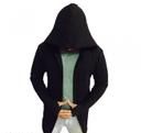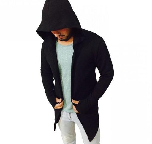 Name: Men Black Hooded Thumbhole Open Long Shrug Men's Fashionable Self Design Cotton Square Neck Collar Full Sleeves Cardigan Overcoat Shrug
