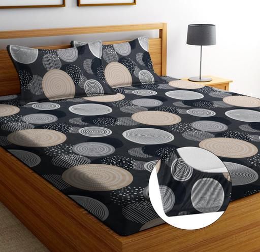 Cotton Feel Elastic Fitted Bedsheet with 2 Pillow Covers Size King Double Size (72x78)
