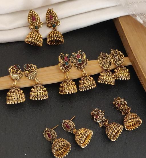 Name: Gold Plated Fancy Jhumka Earrings for Women – Set of 6 Traditional Oxidised Gold Jhumka Earrings Combo for Women Daily Wear Ethnic Jhumka Earrings Set for Women (Pack of 6)