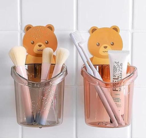 Name: Bear ToothBrush Holder (Pack of 1) Self Adhesive Multipurpose Organizer for Cosmetics 4Pcs Plastic Toothbrush Holder (Multicolor, Wall Mount) and Plastic Soap Holder Beautiful Fish Shape Sop Dish Case Holder Bathroom Accessory ( Pack of 2)