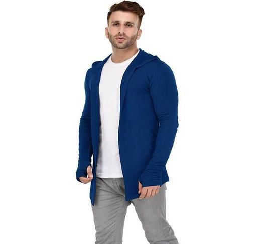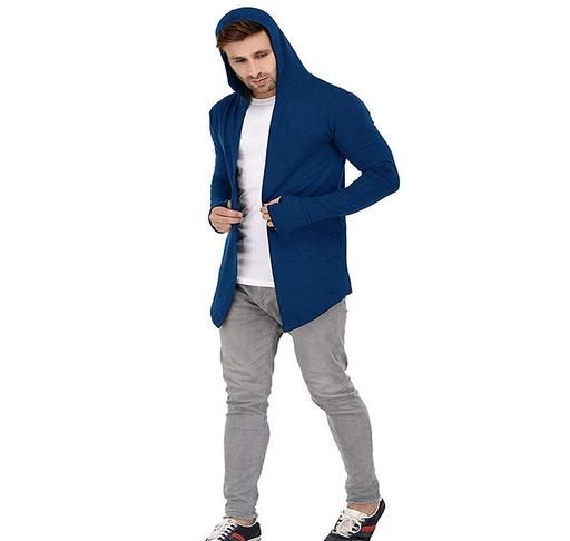 Name: Men Royal Blue Hooded Thumbhole Open Long Men's Fashionable Solid Cotton Square Neck Collar Full Sleeves