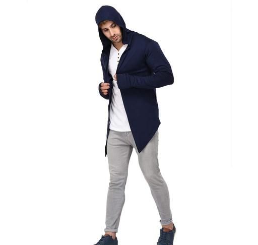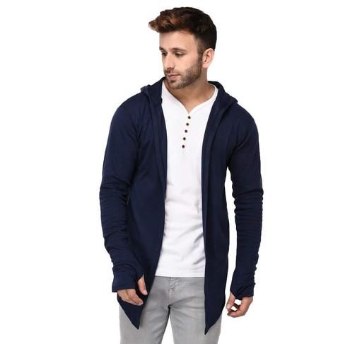 Name: Men Navy Blue Hooded Thumbhole Open Long Tshirt Men's Fashionable Solid Cotton Square Neck Collar Full Sleeves Tshirt