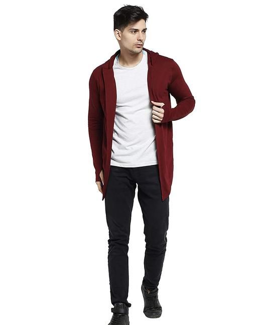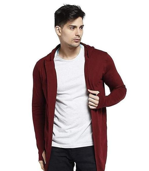 Name: Men Mehroon Hooded Thumbhole Open Long Tshirt Men's Fashionable Solid Cotton Square Neck Collar Full Sleeves Tshirt