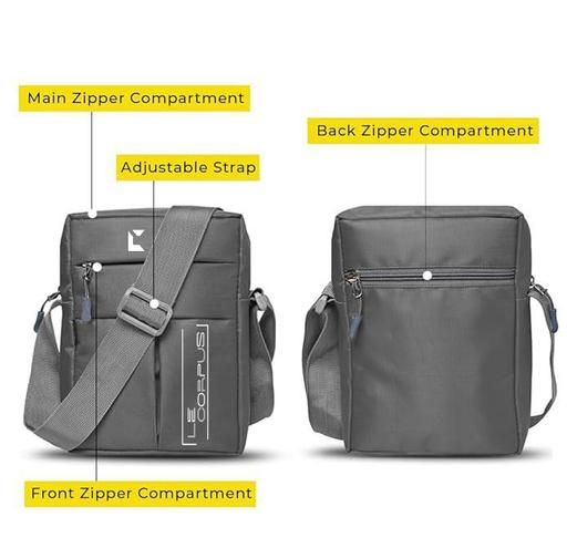 Multiple Chambers Padded pockets Crossbody bag: A total of 4 pockets (One front side Pocket, 1 Inner Side Pocket, 1 Main Pocket & 1 Back Pocket); Colors: Black, Navy Blue, Airport Blue, Royal Blue and Grey. Material: Made of Nylon Material with zipper. Padded pockets Crossbody bag. It's a very comfortable durable shoulder Messenger Bag. Long Nylon Strap For Easy And Stylish Carrying.