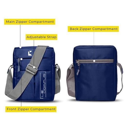 Multiple Chambers Padded pockets Crossbody bag: A total of 4 pockets (One front side Pocket, 1 Inner Side Pocket, 1 Main Pocket & 1 Back Pocket); Colors: Black, Navy Blue, Airport Blue, Royal Blue and Grey. Material: Made of Nylon Material with zipper. Padded pockets Crossbody bag. It's a very comfortable durable shoulder Messenger Bag. Long Nylon Strap For Easy And Stylish Carrying.