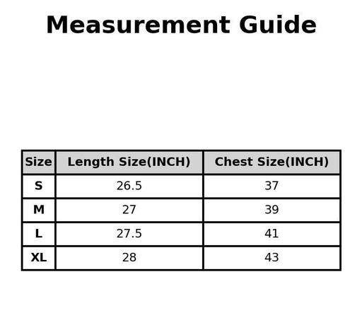 XL (Chest Size: 43 in, Length Size: 28 in)