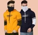 Cotton Blend Men's T-shirts with Full Sleeves & Hooded Neck with Inbuit Mask Combo (Pack of 2)