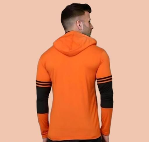 Full Sleeves Hooded Neck with Inbuit Mask Cotton Blend T-shirts Combo for Men (Pack of 2)Olive1 & Orange1