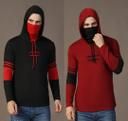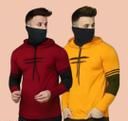 Cotton Blend Men's T-shirts with Full Sleeves & Hooded Neck with Inbuit Mask Combo (Pack of 2)