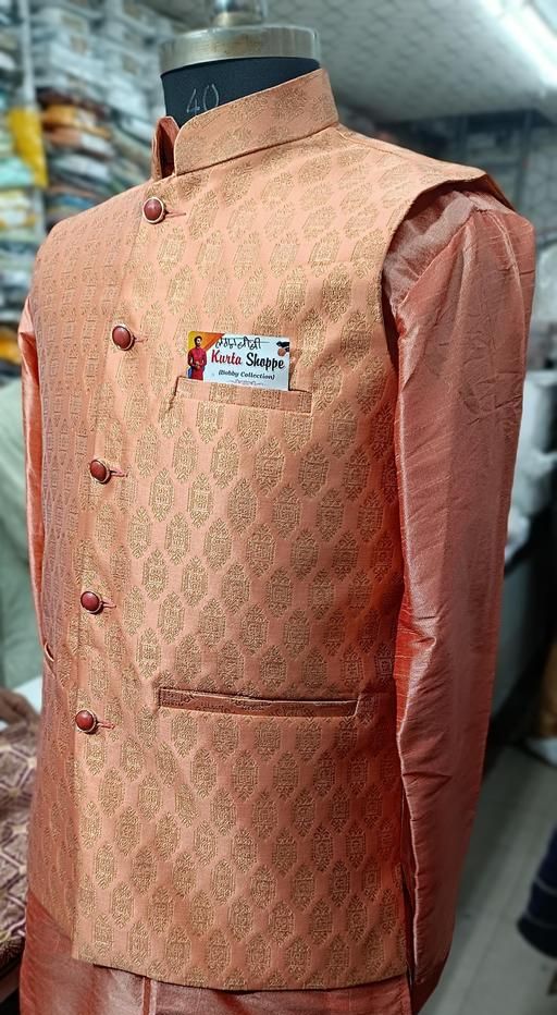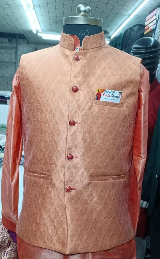 Name: PARTY WEAR ETHNIC JACKET FOR MENS(ONLY KOTI) Fabric: Chanderi Silk Sleeve Length: Sleeveless Pattern: Self-Design Combo of: Single Sizes: S (Length Size: 25 in) M (Length Size: 25 in, Shoulder Size: 15 in) L (Length Size: 26 in, Shoulder Size: 16 in) XL (Length Size: 26 in, Shoulder Size: 16 in) PARTY WEAR KOTI JACQUARD SILK ONLY KOTI FOR MENS Country of Origin: India