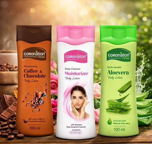 Product Name: COROnation Herbal Coffee and chocolate,Aloevera and Moisturising Body Lotion for Men & Women - 3x100 ml(Pack of 3)